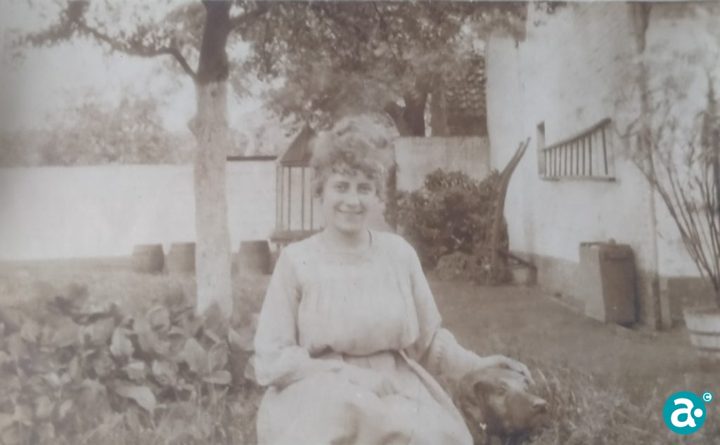 De jonge vrouw in de tuin van café Apollo aan de Beekstraat is Miet Neeskens , later gehuwd (op 19 april 1921) met Egbertus van Erp.